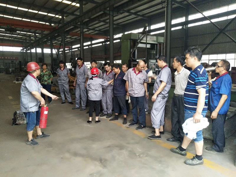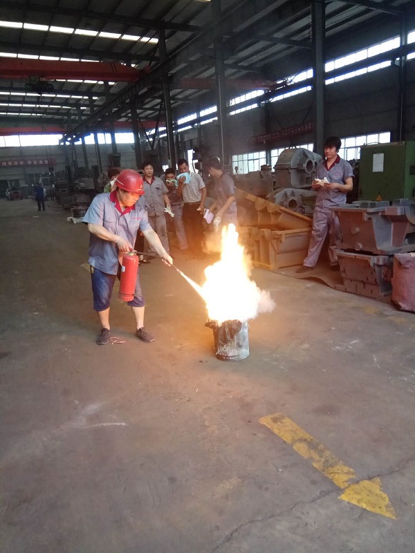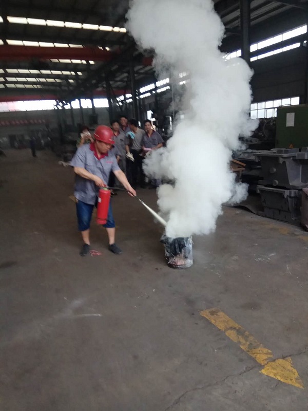 4、安全負責人和車間領(lǐng)導(dǎo)一同為大家展示發(fā)生火災(zāi)時滅火器演示